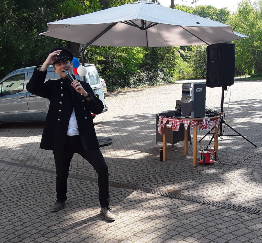 Kevin Walsh entertaining the residents in the car park at Abbotsleigh Care Centre, Staplehurst during the Corona Virus outbreak.